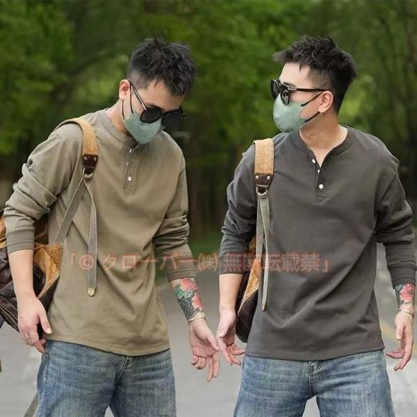 tシャツ Tシャツ カットソー メンズ 長袖 ヘンリーネック 100%綿 柔らかい 無地 シンプル カジュアル アメカジ おしゃれ きれいめ 春 秋 冬 インナー トップス