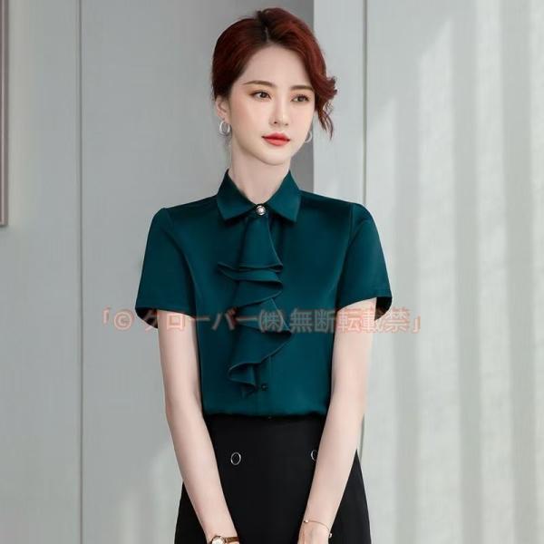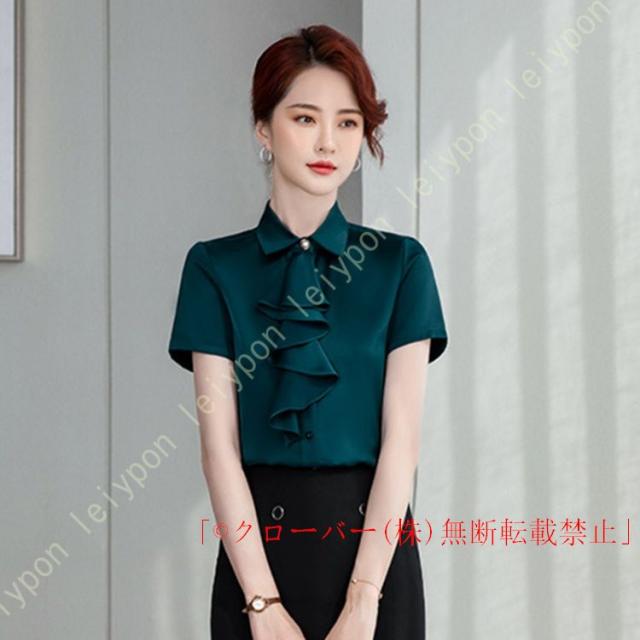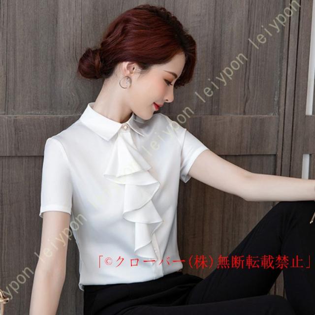 トップス 夏 ファッション ブラウス フリル オフィス 半袖 クローバー株式会社 パフスリーブ シャツ トップス シフォン おしゃれ エレガント 通勤 通学 大きいサイズ柔らかい上着