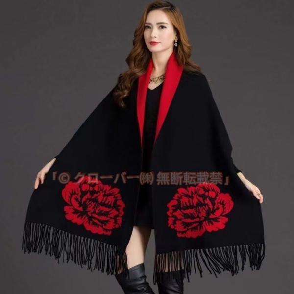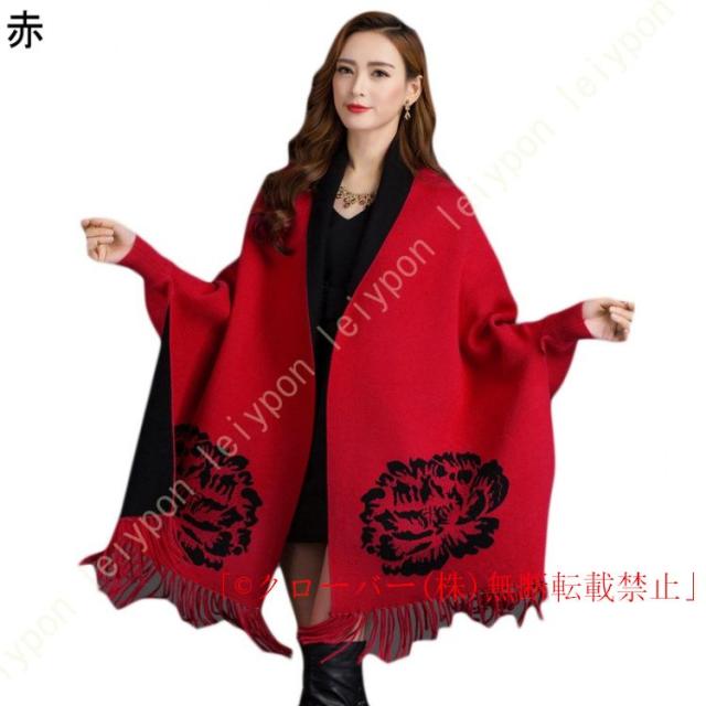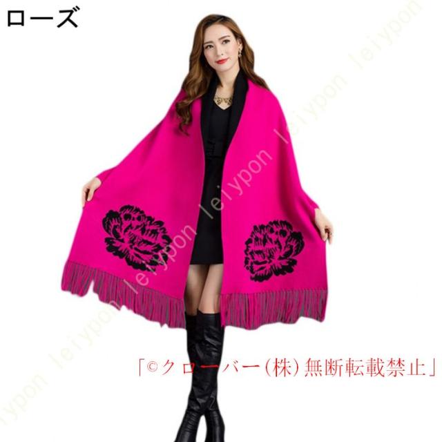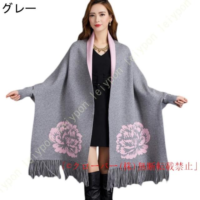 ストール風 カーディガン ストール オシャレ ケープストール ストール マフラー クローバー株式会社 花柄 暖かい お洒落 ポンチョ 袖付き 細見え 腰周りをカバー コーディネート