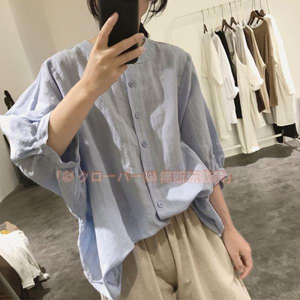 レディース 半袖 リネン 綿麻 ブラウス ブラウス リネン クローバー株式会社 リネン トップス レディース 大人 森ガール シンプル カジュアル ナチュラル