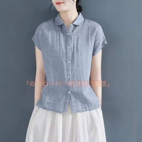 半袖シャツ ブラウス レディース 折り襟 無地 綿麻 トップス クローバー株式会社 七分袖 シフォン きれいめ おしゃれ ゆったり カジュアル 春夏 通勤通学 就活 細身