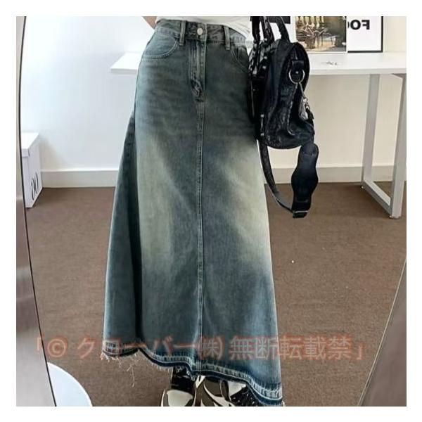 デニムスカート スカート レディース デニム ロングスカート フレアスカート ロング丈 クローバー株式会社 ハイウエスト Aライン 体型カバー 春 夏 細見え 高見え