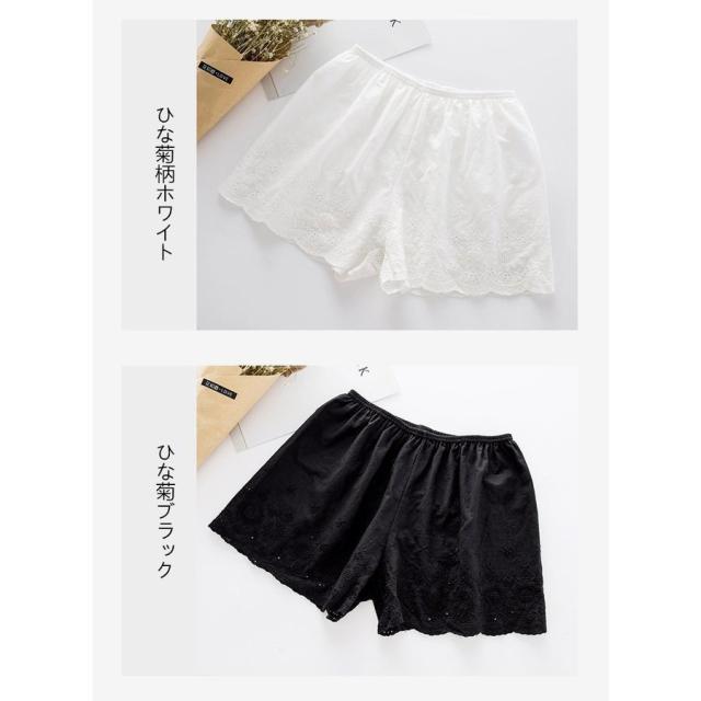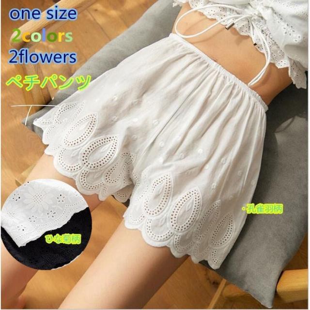 ペチパンツ ペチコート レディース ウエストゴム ショート コットン 激安 綿 綿生地 刺繍 ペチパン 下着 肌着 見せパン 夏 白 黒