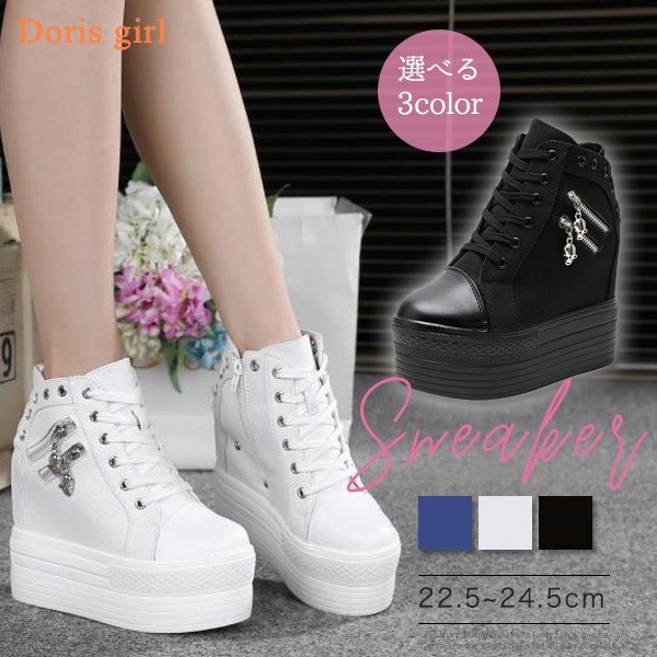 スニーカー レディース キャンバス 厚底 カジュアル インヒール ハイカット 運動靴 アウトドア 大きいサイズ