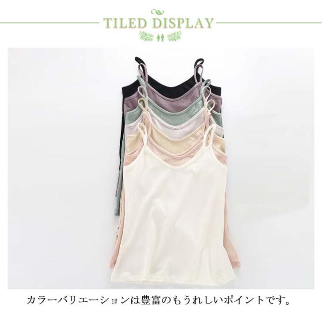 | デイリー使いにピッタリなシンプルキャミソール。 シンプルで使いやすく、キャミソール。 柔らかな綿生地、気持ち良い肌触りで伸縮性も抜群。 カラーバリエーションは豊富のもうれしいポイントです。 | |