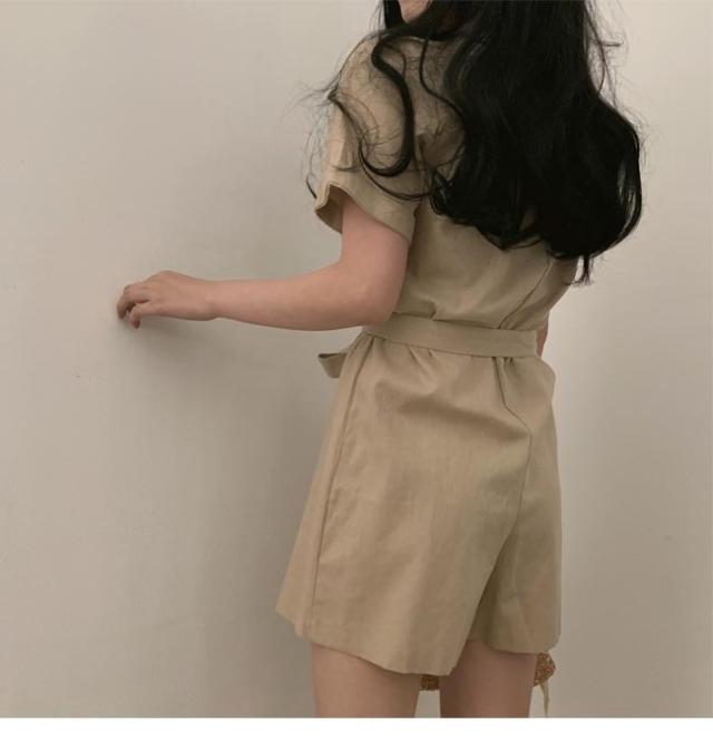 コンビネゾン レディース 夏 つなぎ 半袖 ショートパンツ オールインワン ゆったり シャツつなぎ 薄手 半袖つなぎ レトロ リゾートウェア