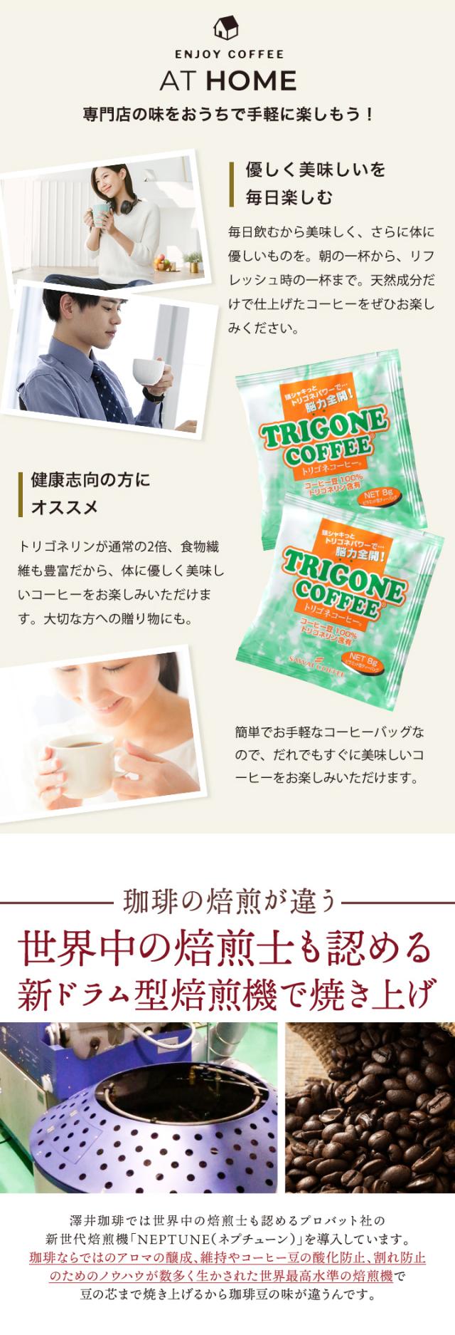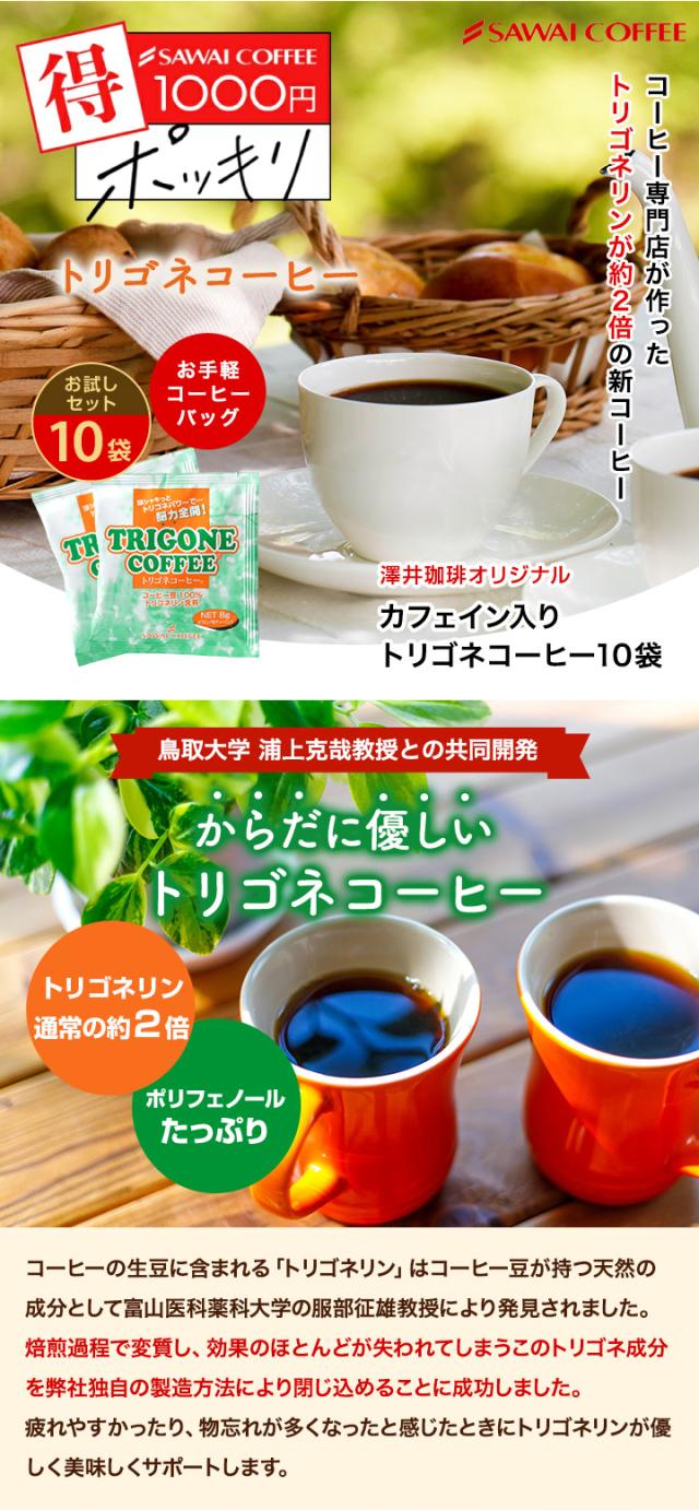 1000円ポッキリ コーヒーバッグ トリゴネコーヒー お試し 8g×10袋入り 送料無料 メール便 少量 ティーバッグ トリゴネリン クロロゲン酸 健康 アロマ 澤井珈琲 ポイント消化