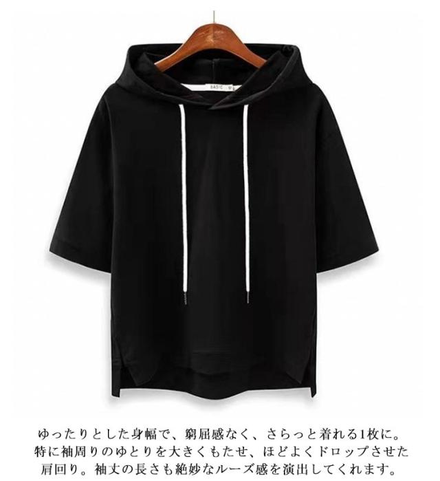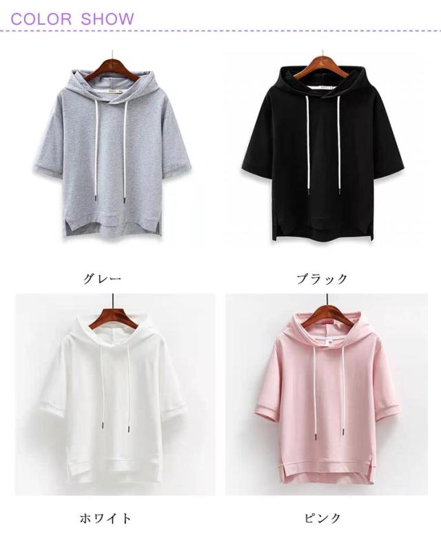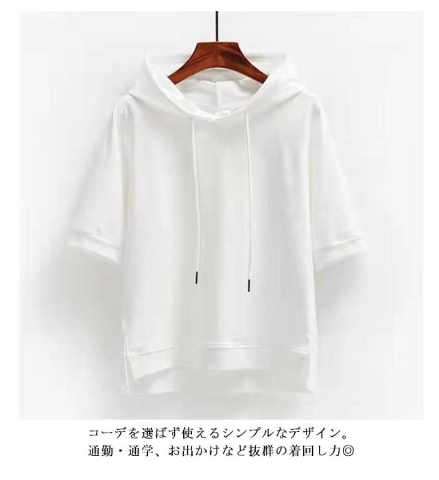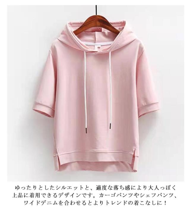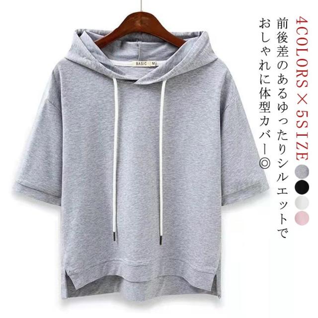 パーカー フード付き レディース Tシャツ トップス 夏 半袖 フード付きtシャツ 春夏 カットソー プルオーバー 夏パーカー オシャレ 前後差 ルームウェア かわいい ゆったり シンプル 無地 部屋着 カジュアル オーバーサイズ 薄手 半袖tシャツ おしゃれ 旅行用 通勤
