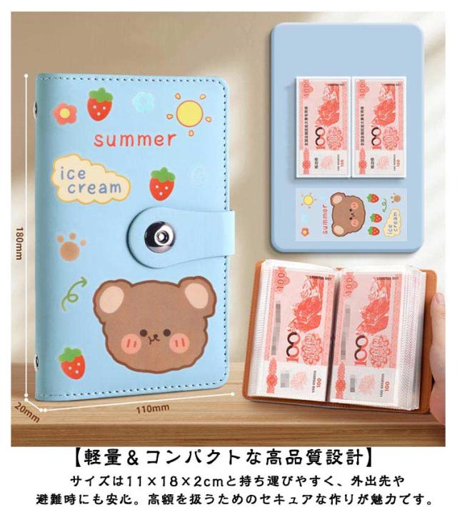 貯金ファイル 大容量 可愛い お札入れ 100枚収納可能 貯金箱 お札 バインダー ケース 封筒貯金 お金仕分け クリアポケット 家計簿 お金 節約 ギフト 通帳ケース お金 袋分け 手帳 カード 診察券 封筒 送料無料