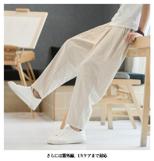 メンズ イージーパンツ ワイドシルエット 9分丈 ワイドパンツ カラーパンツ ロング ワイドパンツ 無地 接触冷感 九分丈ワイドパンツ イージーパンツ メンズ サルエルパンツ アラジンパンツ ストレッチ 吸水速乾 UVケア 紫外線対策