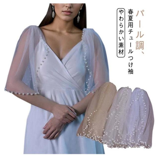 パール調 付け袖 つけそで 二の腕隠し ノースリーブ チュール つけ袖 ふんわり 振り袖 パーティドレス 二の腕カバー 細見え効果 アームカバー エレガント お洒落 細見え 結婚式