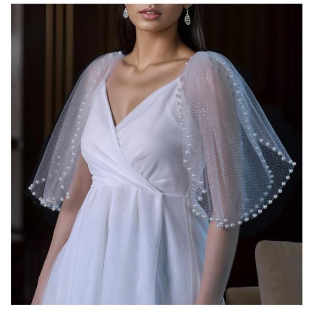 | パール調、春夏用チュールつけ袖 ワンピースやキャミソール、ノースリーブに縫い付けてアレンジ可能 肌見せを控えたいシーンや冷房・日差し対策にもぴったり! やわらかい素材×軽やかデザイン 通気性のよい薄手のシースルー生地で夏でも快適 二の腕をカバーしながら、着こなしにフェミニンな抜け感をプラス ノースリーブトップスやワンピースに最適 | |