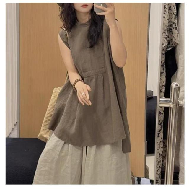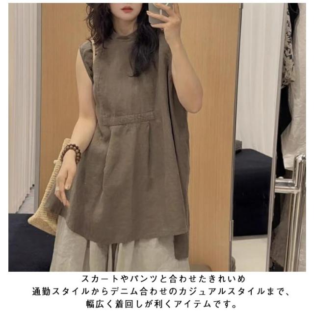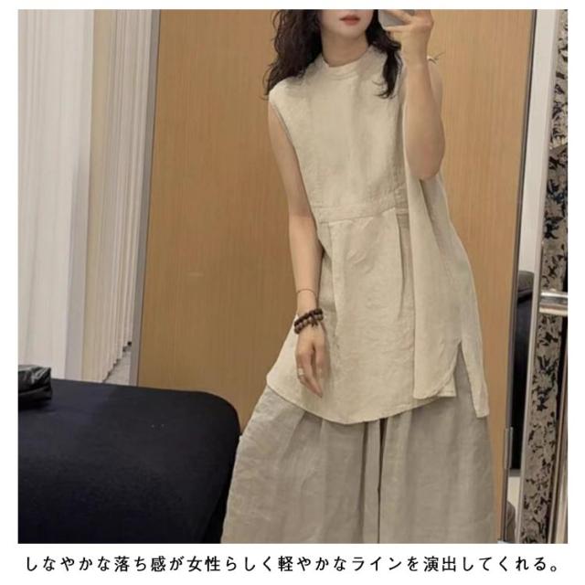 ノースリーブ ブラウス レディース スタンドカラー ロングシャツ チュニック ロング丈 シャツ ブラウス チュニックブラウス アシンメトリー裾 大人 かわいい 体型カバー 大人 カジュアル M L XL 2XL