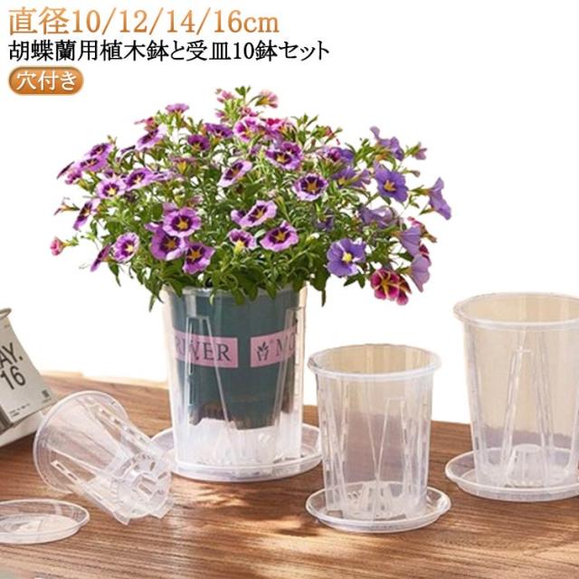 植木鉢 10鉢セット 蝶蘭 植木鉢 透明 穴付き プラスチック 蘭の鉢 胡蝶蘭鉢 洋蘭鉢 受皿付き 屋内 屋外 胡蝶蘭の植え替え オーキッドポット 観葉植物 多肉植物 育苗ポット プランター 保育園ポット 送料無料 直径10/12/14/16cm