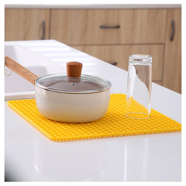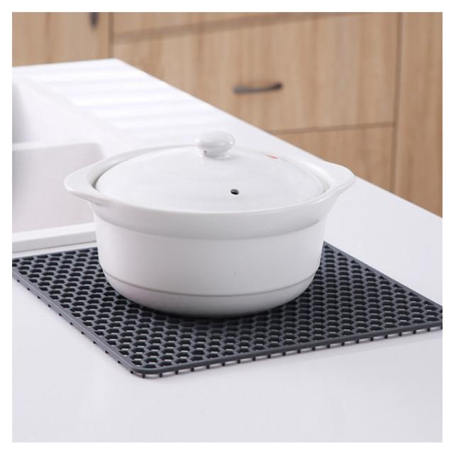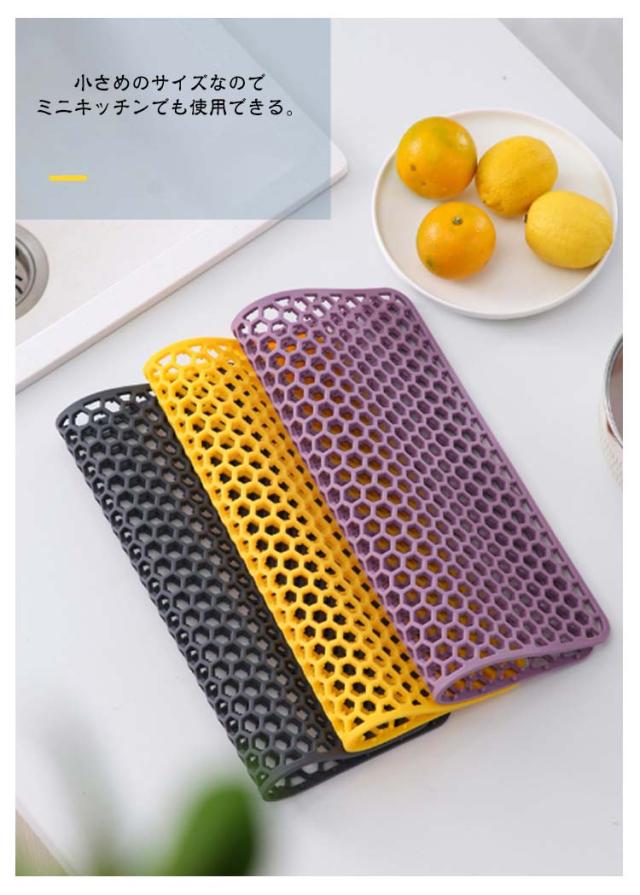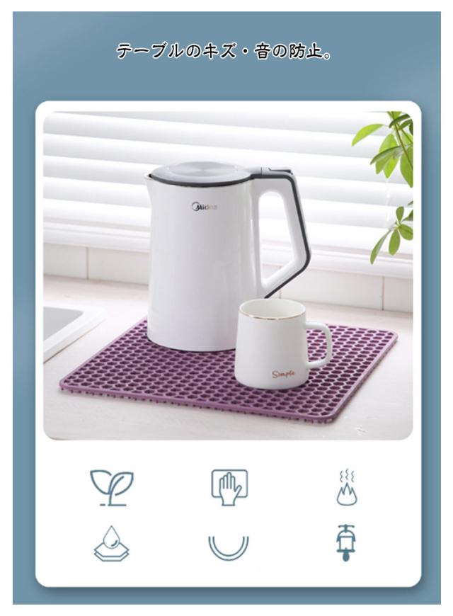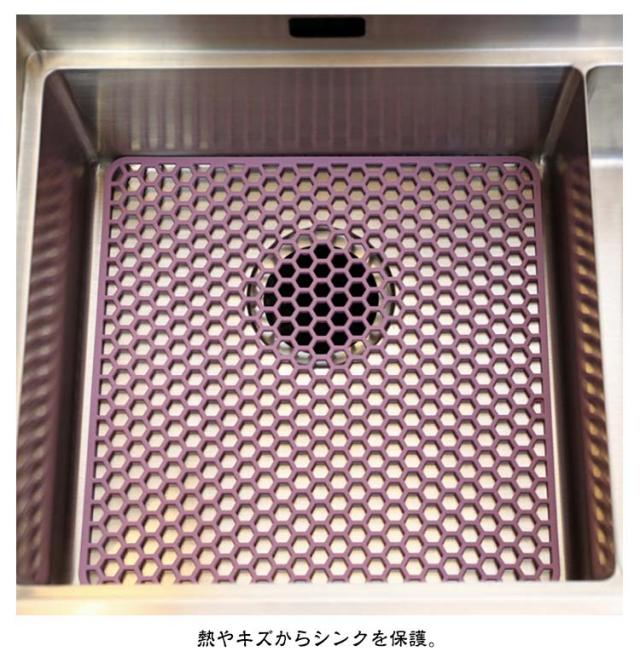 | 柔らかいシリコーンゴム製シンクマット 熱やキズからシンクを保護。 テーブルのキズ・音の防止。 ガラス・陶器などのキズ防止。 水はけが良く、お手入れしやすい形状。 小さめのサイズなのでミニキッチンでも使用できる。 | |