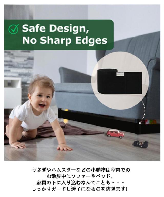 | ソファやベッドの下に取り付け隙間をガード! ペットや子供のおもちゃ、お菓子のクズなどを防ぎ掃除の手間を省きます。 うさぎやハムスターなどの小動物は室内でのお散歩中にソファーやベッド、家具の下に入り込むなんてことも・・・しっかりガードし迷子になるのを防ぎます! 取り付けはかんたん!家具の脚部分に、付属の粘着シートを設置。そのシートにすき間テープを取り付けます。 ベッド・ソファー以外にも、カウチ、椅子、テーブル、サイドボード、収納ラックなど様々な家具にお使いいただけます。 | |