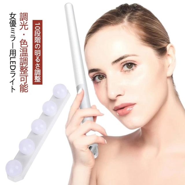 女優ライト 穴開け不要 3段階調色 10段階調光 目に優しい 取り付け 簡単 LEDミラーライト 女優ミラー 化粧ライト メイクライト 鏡に付けるライト バー型LEDライト ledメイクアップライト バニティミラーライト 高輝度 USB給電式 省エネ メモリー機能