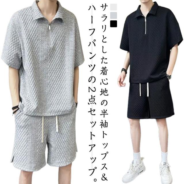 上下セット 無地 ジャージ 涼しい セットアップ メンズ 半袖 春夏 ショートパンツ メンズ Tシャツ ゆったり 通気性よい 大きいサイズ スウェット ハーフパンツ トップス ルームウェア 快適 軽量