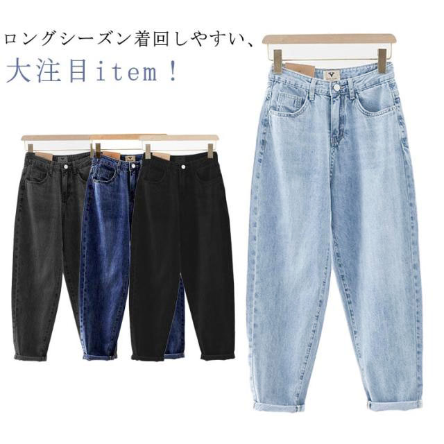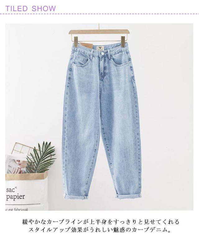 デニム ハイウエスト サルエルパンツ 夏 ワイド 大きいサイズ 7分丈 パンツ レディース デニム 7分丈 コクーンパンツ 春 パンツ カーブパンツ ボトム ワイドパンツ ゆったり 体型カバー バルーンパンツ ジーンズ 大人 カジュアル
