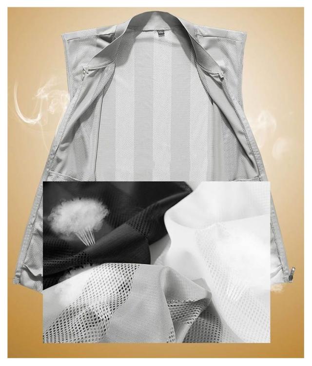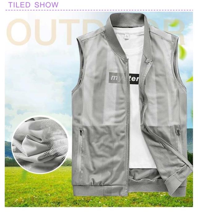| 通気性抜群なメッシュサマーベスト! 両サイド&裏地にポケット付き | |