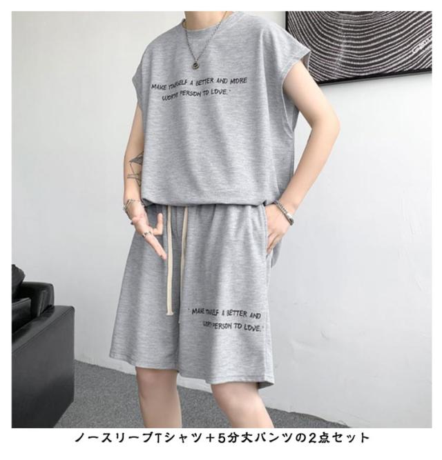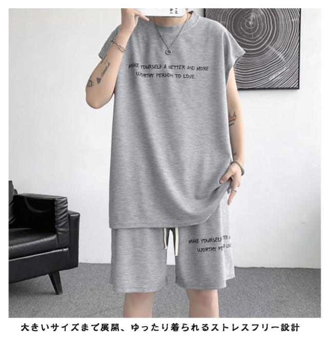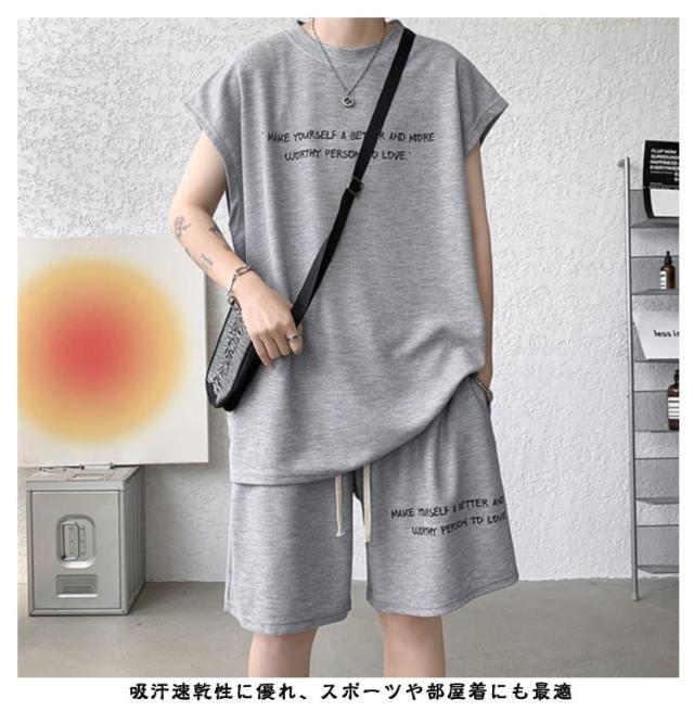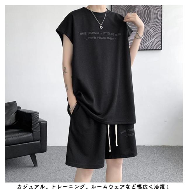 メンズ ノースリーブ 半ズボン メンズ 上下セット ショートパンツ 涼しい 薄手 大きいサイズ 無地 速乾 Tシャツ ルームウェア カジュアル セットアップ 夏服 ブラック ホワイト