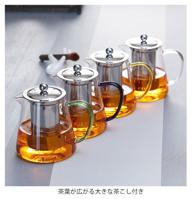 | ・お茶の色合いを目で楽しみながらのティータイムに! ・ティーカップ4つ付き ・直火OKの耐熱ガラス製ティーポット ・茶葉が広がる大きな茶こし付き ・大きい茶こしをがついているため、茶葉が広がり、かつ少量のお湯でも抽出しやすいのが魅力。 ・ギフトにもおすすめのティーセットです。 | |