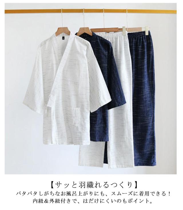 浴衣 じんべい メンズ 涼しい 和服 薄手 綿 寝巻き 甚平 7部袖 おしゃれ 春夏 和風 パジャマ 羽織 甚平 夏 セット 寝巻き 部屋着 湯上がり ガウン バスローブ 紐付き ポケット ゆったり リラックス 男性用 紳士