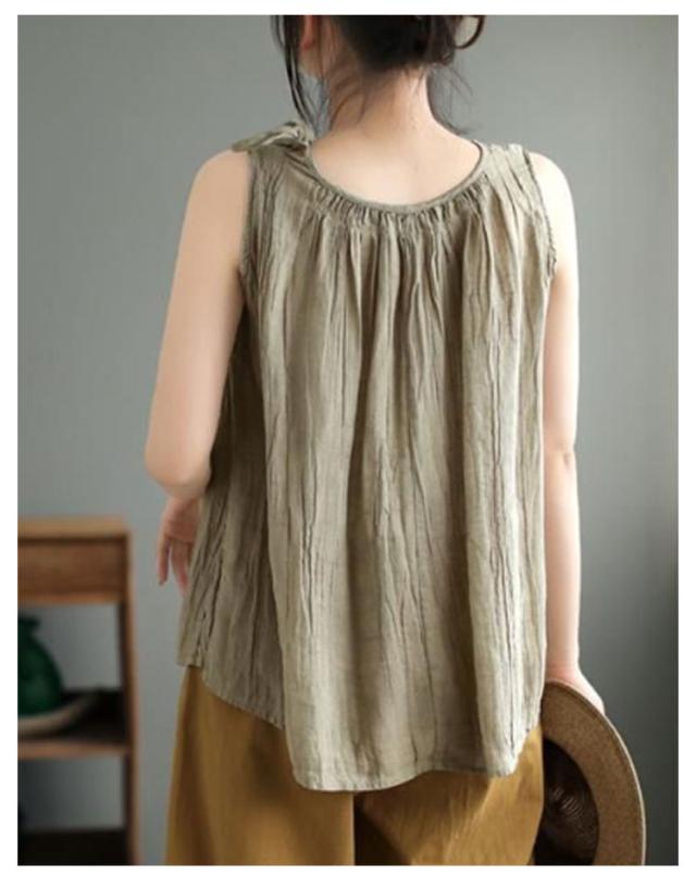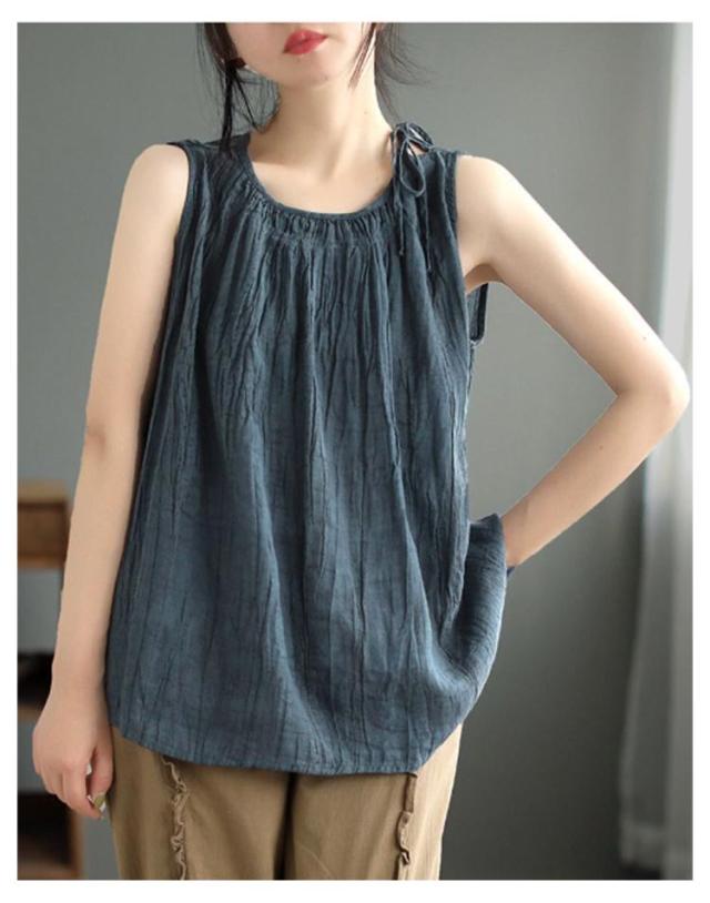 | 涼し気な素材感が光る大人のタンクトップです ゆるっと着こなす綿麻の柔らか質感と清涼感がポイント 大きめのバストサイズでゆったり着れます 軽くて清涼感のあるサラリとした肌触りが、暑い夏の時期にぴったり! | |