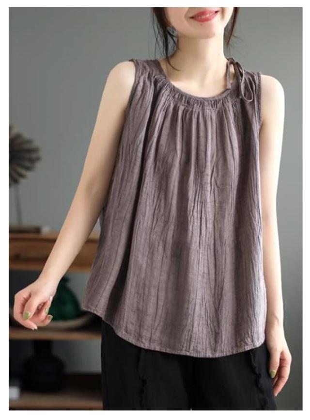 ノースリーブ トップス タンクトップ キャミソール シャツ おしゃれ 重ね着 ゆったり タンク シャツブラウス タンクトップ レディース シンプル tシャツ 大きいサイズ 夏 コットンリネン 綿麻 体型カバー ブラウス 大人 カジュアル 着痩せ 涼感 無地
