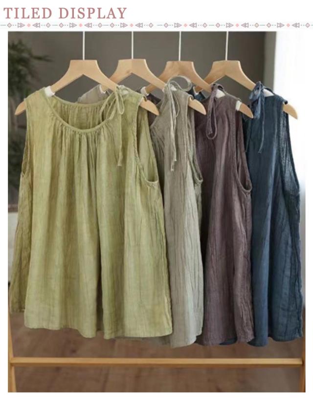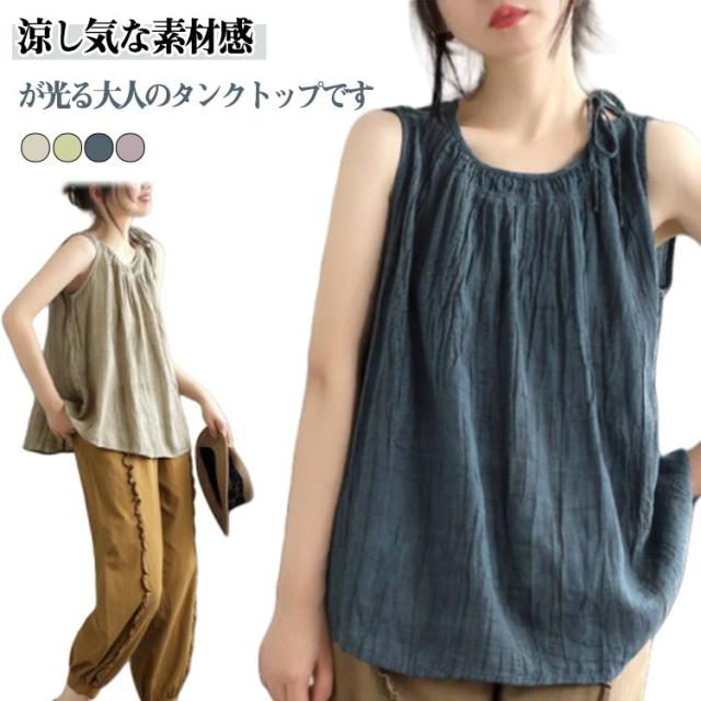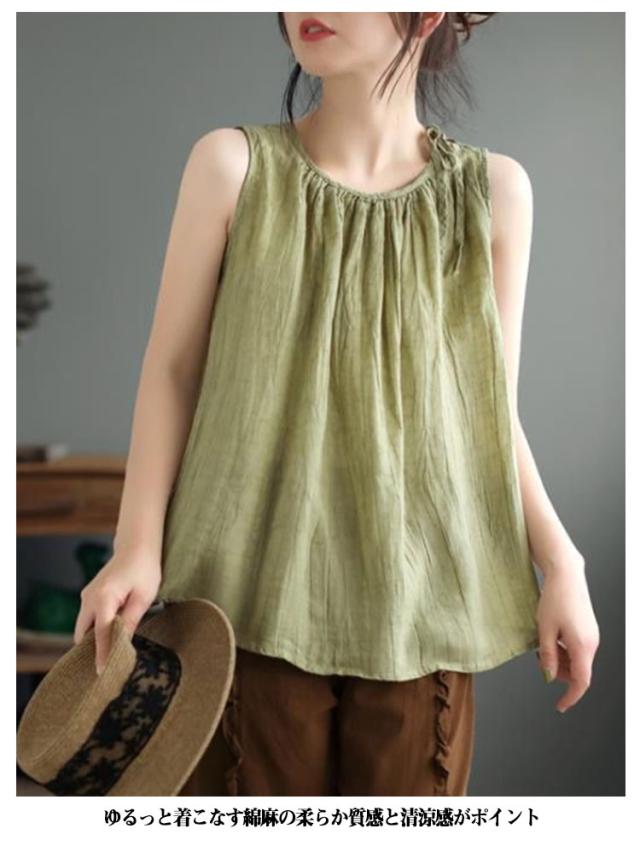 体型カバー ブラウス タンクトップ トップス tシャツ シャツブラウス レディース 重ね着 ノースリーブ 春 キャミソール 涼感 シャツ シンプル 夏 綿麻 コットンリネン ゆったり 大きいサイズ おしゃれ 大人 カジュアル 着痩せ タンクトップ 無地