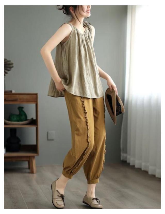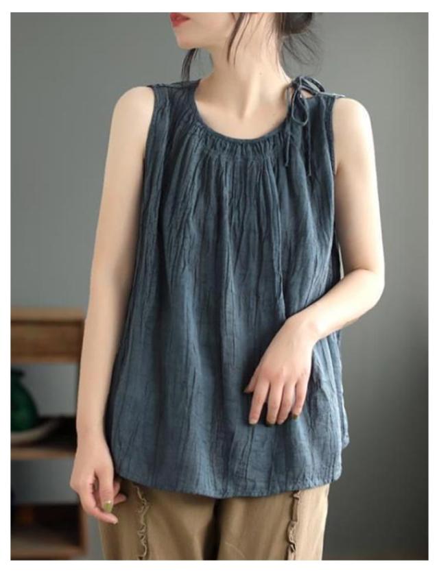 | 涼し気な素材感が光る大人のタンクトップです ゆるっと着こなす綿麻の柔らか質感と清涼感がポイント 大きめのバストサイズでゆったり着れます 軽くて清涼感のあるサラリとした肌触りが、暑い夏の時期にぴったり! | |