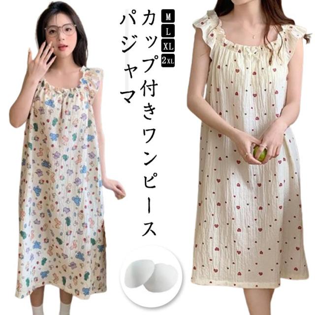 パジャマ 部屋着 大きいサイズ かわいい レディース 薄手 ルームウェア シンプル ワンピース 夏 無地 可愛い ルームワンピース ワンピース 寝間着 カップ付き ゆったり リラックス 膝下 無地 寝巻 女性 旅行 ロングワンピース ギフト プレゼント オシャレ