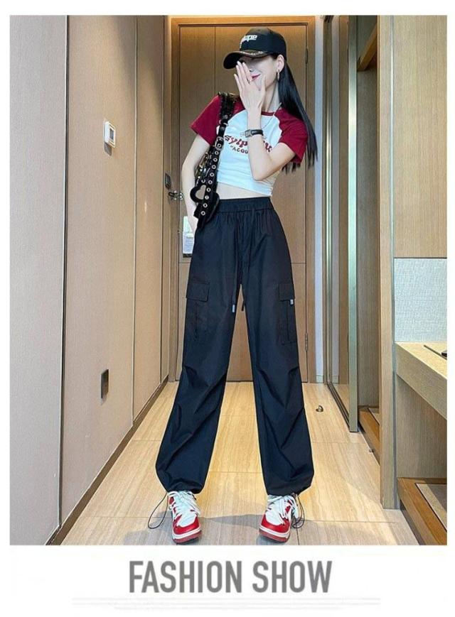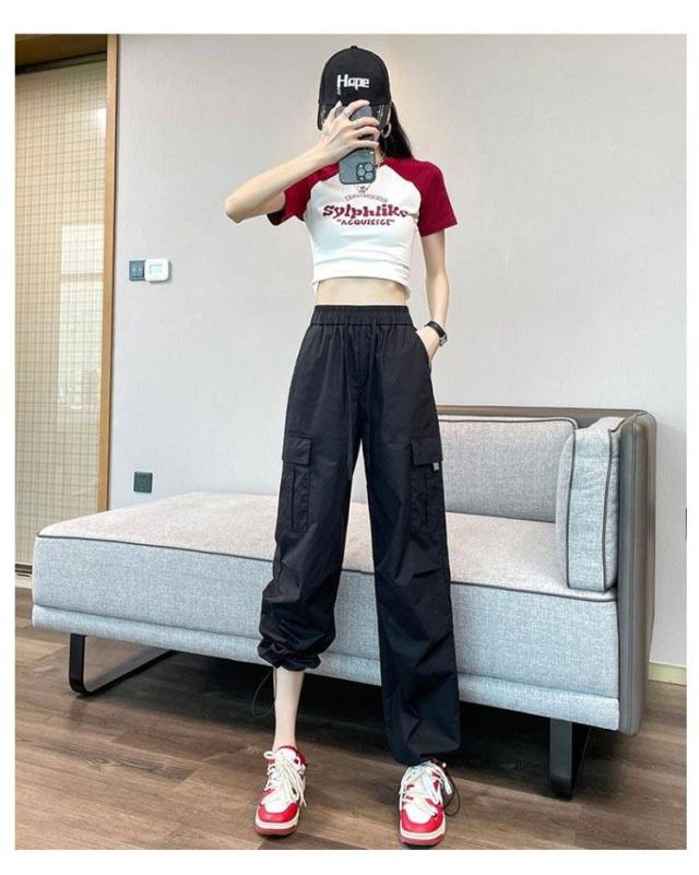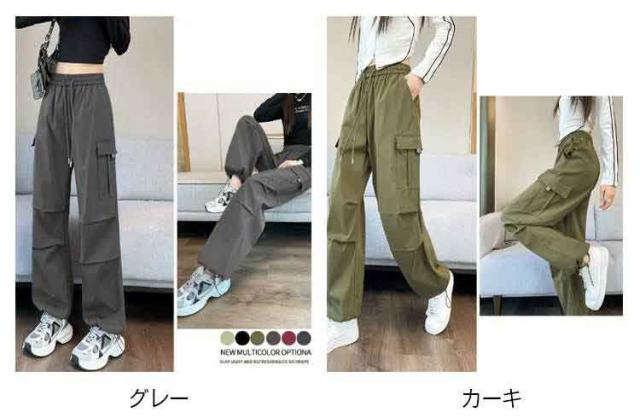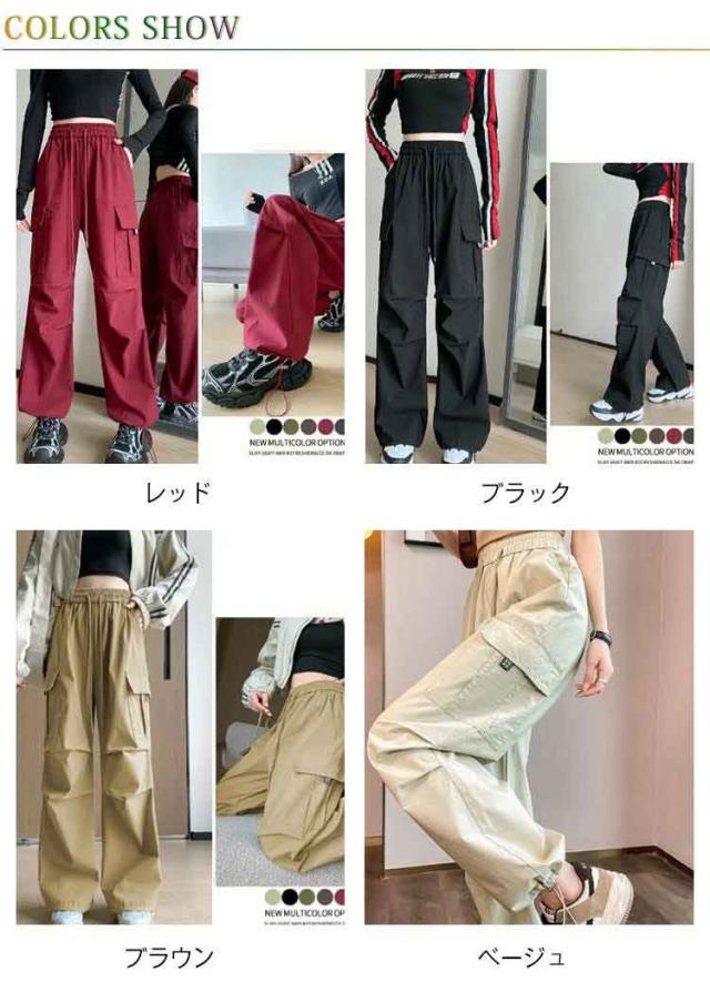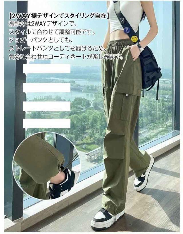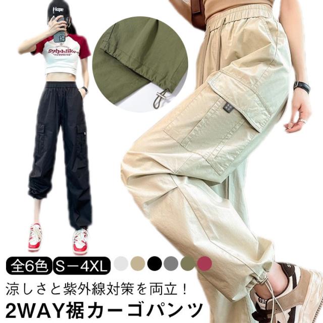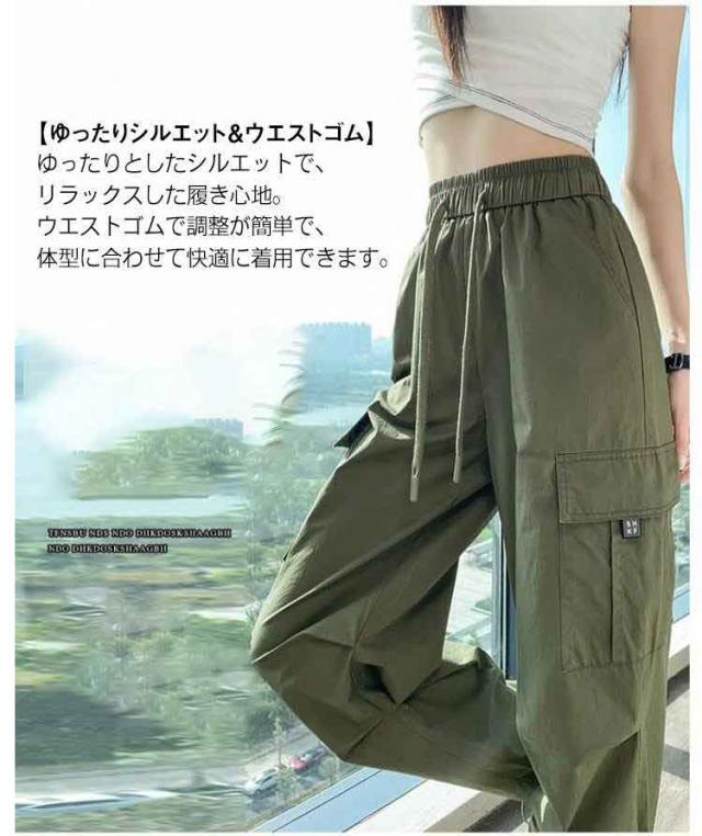 ゆったり 春 シンプル 長ズボン ロングパンツ 薄手 涼しい カーゴパンツ 春夏 紫外線対策 秋服 ボトムス レディース レディース 接触冷感 速乾 カジュアル 6色展開 無地 ワイドパンツ UVカット ウエストゴム ヒップポップ ダンスパンツ かっこいい 夏 2way裾