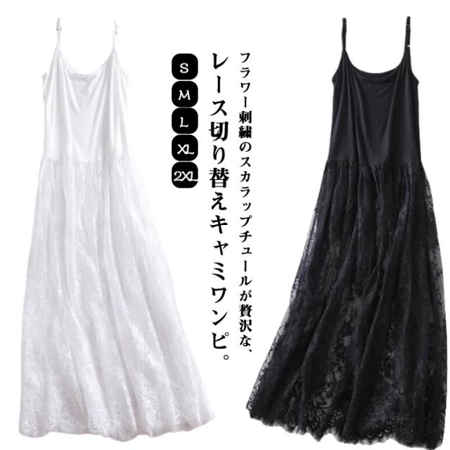 レディース ワンピース 刺繍 ペチコート インナーワンピース キャミワンピース チュールワンピース ロング キャミワンピース チュール レース ワンピース キャミソール ペチワンピース ペチワンピース
