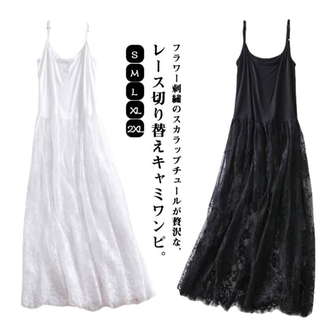 チュールワンピース キャミワンピース ペチコート ワンピース キャミワンピース レディース インナーワンピース レース 刺繍 チュール ロング ワンピース キャミソール ペチワンピース ペチワンピース