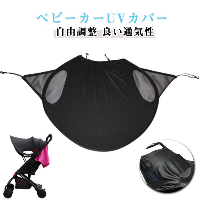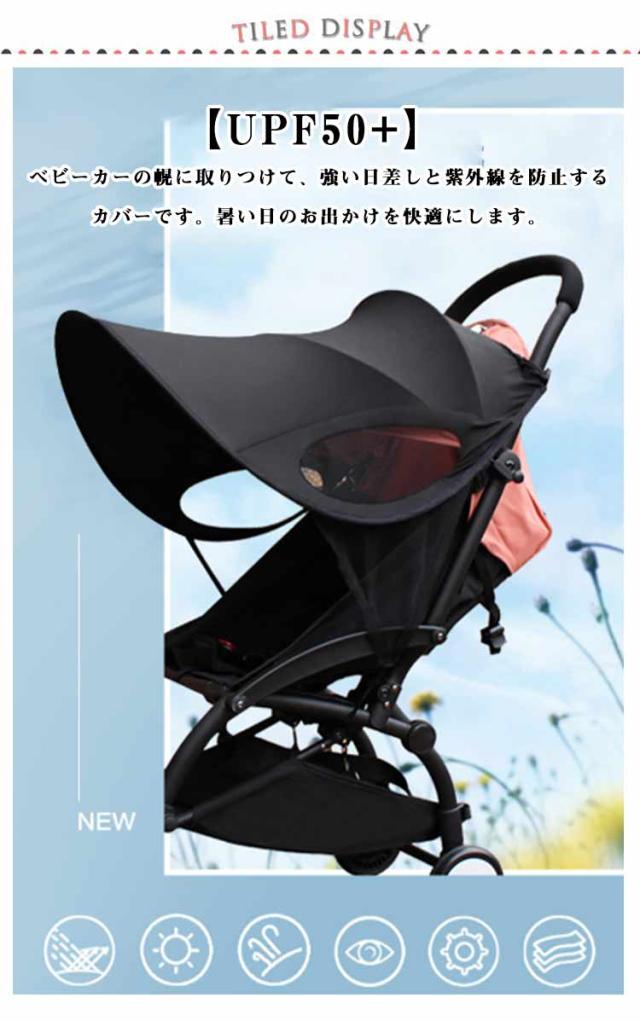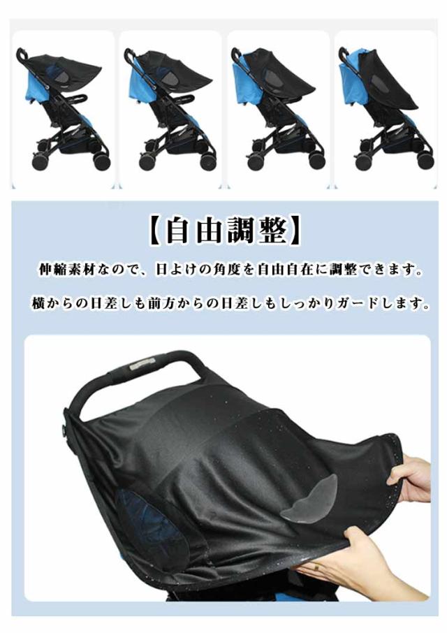 簡単収納 伸縮タイプ 大型サンシェイド ベビーカー 日よけ 折りたたみ 日焼け予防 防水 UVカバー レイフリー 日よけカバー UVカット 通気性 風よけ ベビーカー メッシュ ブラック 黒 熱中症対策