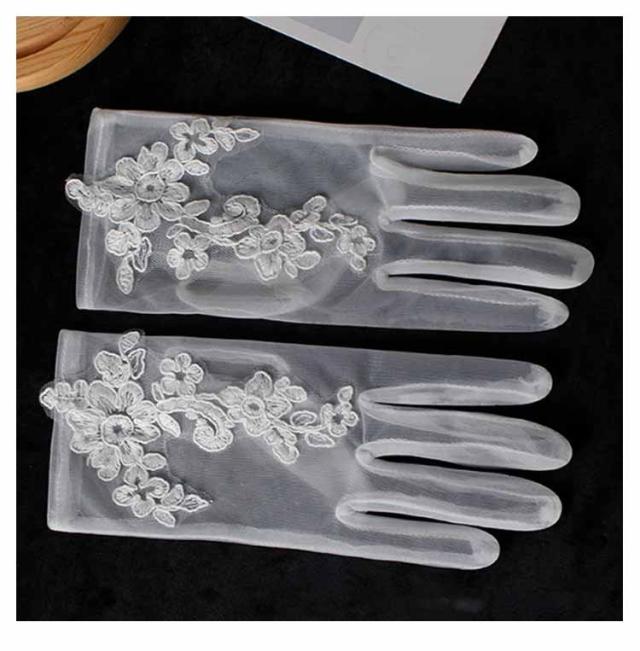 ロショートグローブ オーガンジー手袋 グローブ グローブ 白 グローブ 刺繍 ドレス ウェディンググローブ レース かわいい 花嫁ドレス用 ブライダルグローブ パーティー ウェディンググローブ 結婚式 披露宴 ウエディング ブライダル グローブ