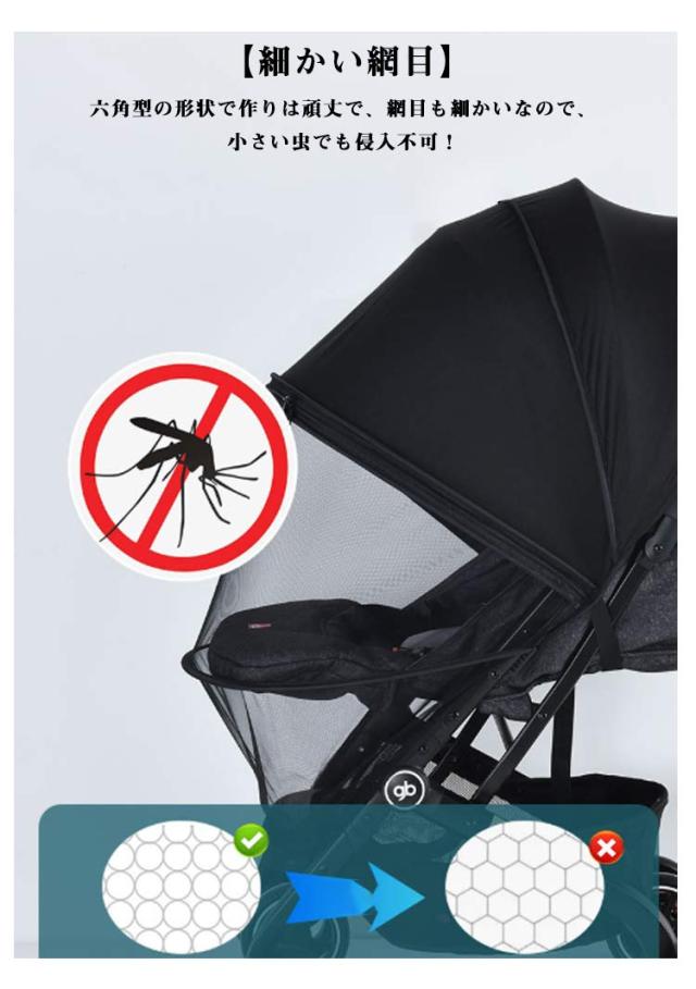 | 取付簡単】伸縮性あり、市販のほとんどのベビーカーに対応可能!ベビーカー全体をカバーすることができて、お出かける際に蚊や害虫などからしっかり赤ちゃんを守ります。 【2WAY】ベビーカーに取りつけて、蚊や害虫などからしっかり赤ちゃんを守ることができますし、紫外線カット機能付き布地で強い日差しと紫外線が防止できます。暑い日のお出かけを快適にします。 【細かい網目】六角型の形状で作りは頑丈で、網目も細かいなので、小さい虫でも侵入不可! 【折りたたみ式】折りたたみ式なので、使わないときに折り畳めます。夏のお出かけにも役立ちます。 | |