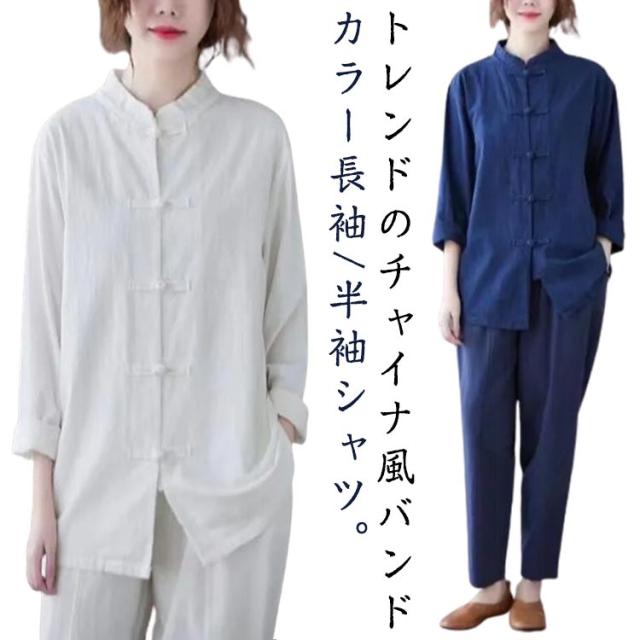 春 前開き シャツブラウス かわいい レディース 長袖 半袖 ブラウス トップス チャイナ風シャツ チャイナ風シャツ シャツ 立ち襟 チャイナボタン 通気 羽織り 体型カバー きれいめ 春夏 チャイナブラウス ゆったり 大きいサイズ カジュアル おしゃれ シンプル 無地 通勤