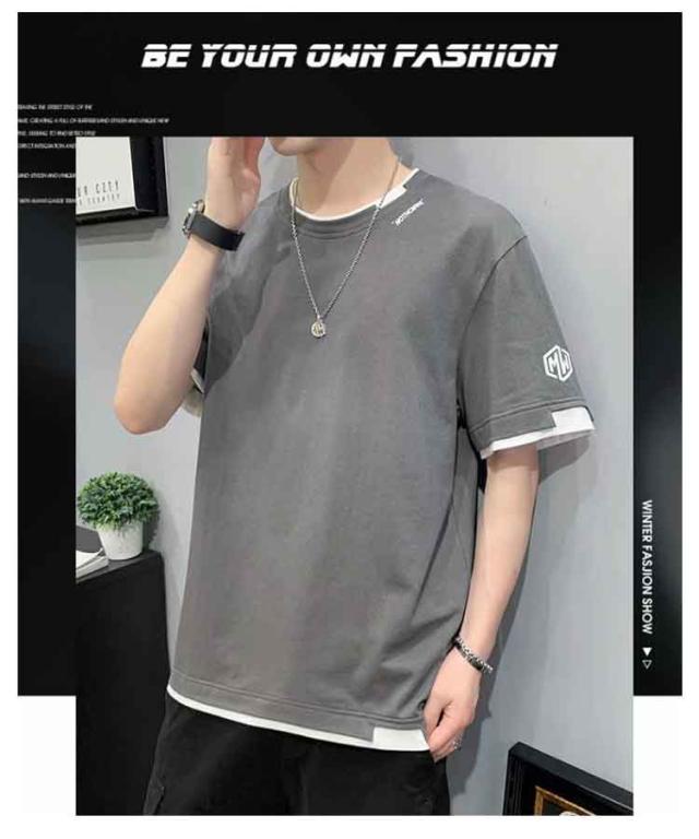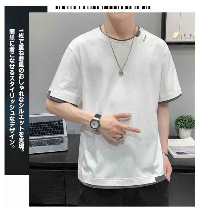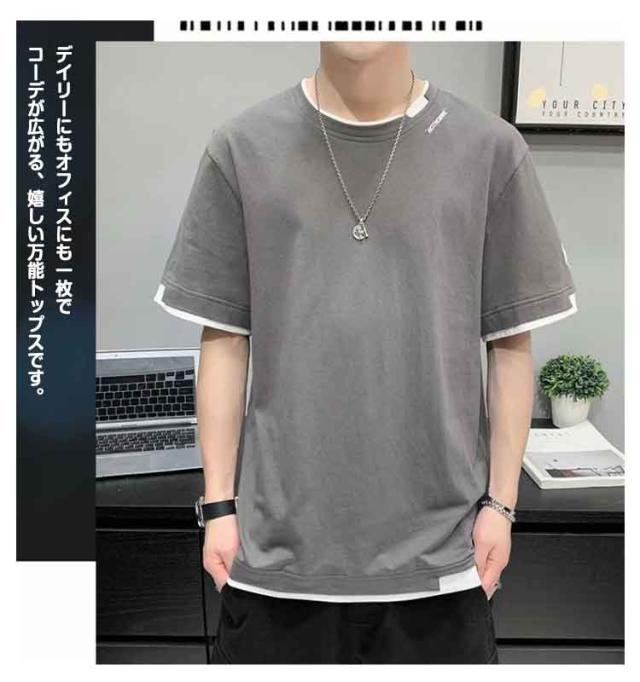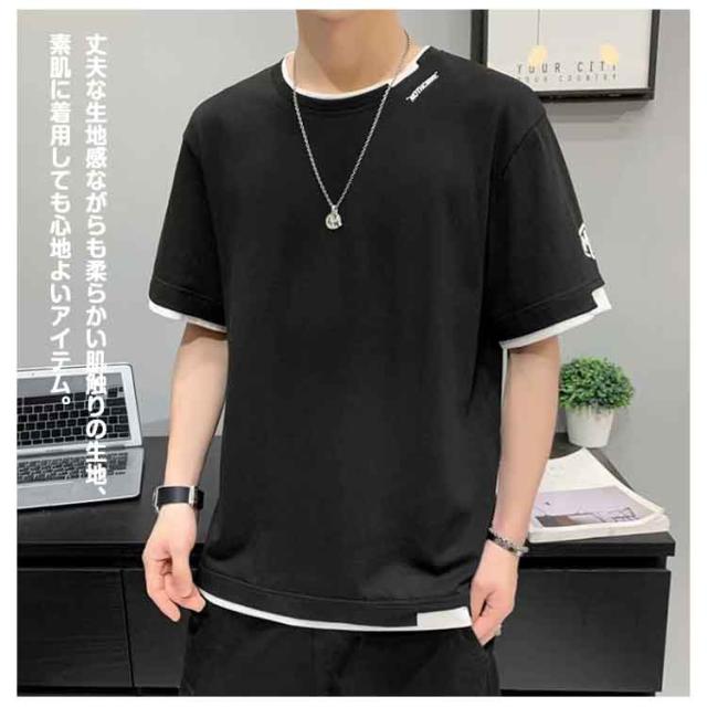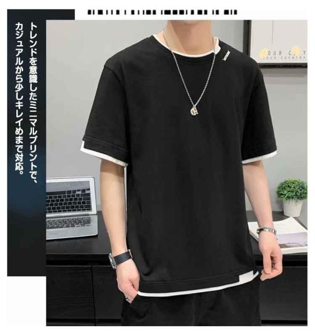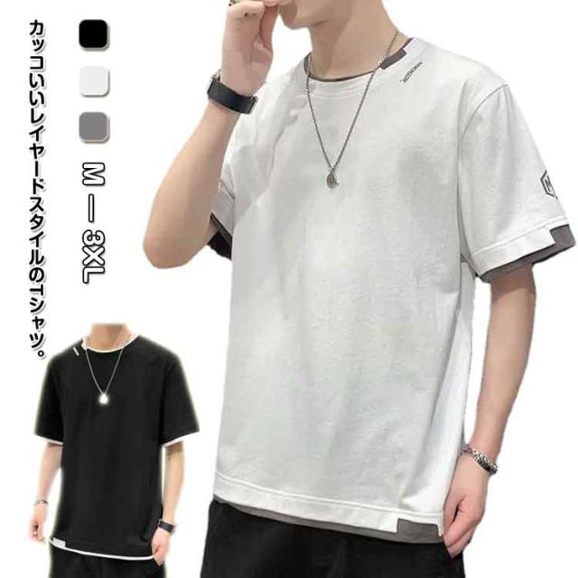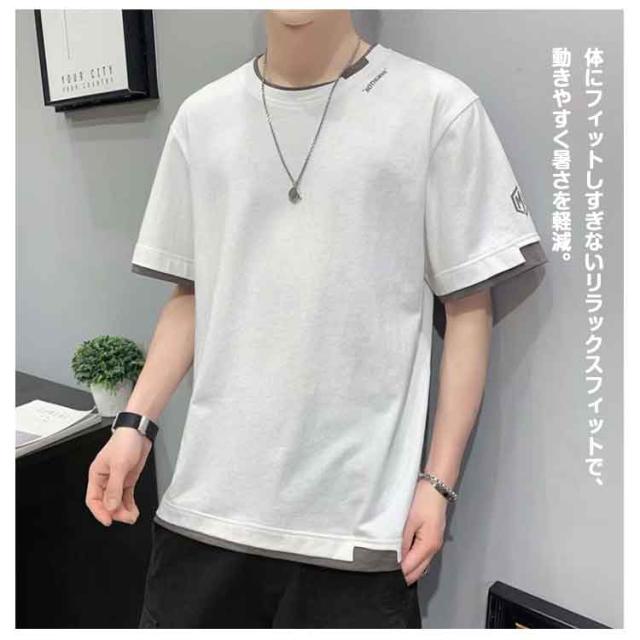 tシャツ メンズ カジュアル tシャツ おしゃれ レイヤード プリントTシャツ Uネック 無地 大きい 男性 Tシャツ 文化祭 半袖 学生 運動会 夏服 ダンス ゆったり 夏 生日プレゼント 通勤 通学 吸汗速乾
