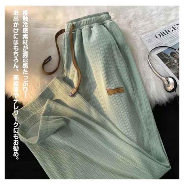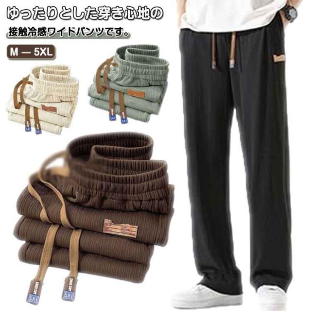 ストレートパンツ リブ編み 接触冷感 カジュアルパンツ ゆったり 涼しい 大きいサイズ アイスシルクパンツ アイスシルクパンツ 夏 メンズ 薄手 ワイドパンツ 長ズボン 春 夏 秋 ボトムス ガウチョパンツ 部屋着 スポーツ 無地 カジュアル おしゃれ