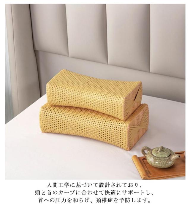蒸れない 竹製 体圧分散 暑さ対策 ストレートネック枕 首のサポート 快適性 籐風 通気性 睡眠用 旅行用 竹製 軽い 手編み 涼しい 自宅用 高齢者 ギフト