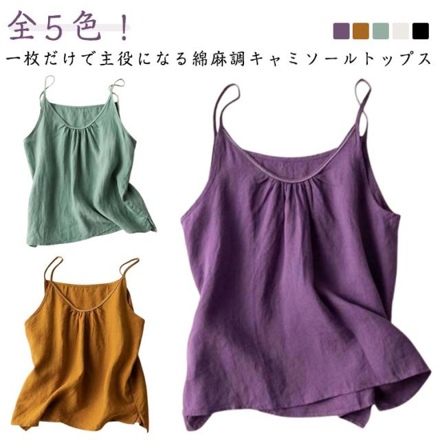 | 全5色!一枚だけで主役になる綿麻調キャミソールトップス 柔らかくて、肌触りがやさしいコットン素材で快適な着心地。 大きめに襟ぐりの開いたデザインでデコルテをキレイに演出してくれる。 ゆったりとしたシルエットなのに美シルエットで女らしい雰囲気がただよう。 豊富なカラーバリエーション展開、一枚で着ても、インナーに着てもオシャレなアイテム。 | |