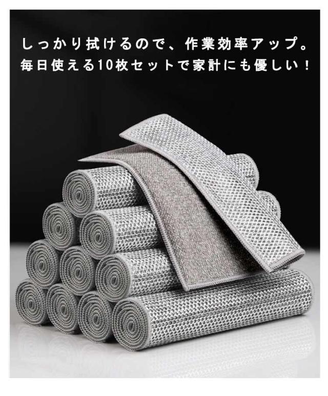 ワイヤーふきん キッチンクロス 竹繊維 10枚セット 台所ふきん 食器洗い用 台拭き キッチンふきん 布巾 シルバー 10枚セット 吸水クロス 油汚れ対応 厚手 家庭用 吸水性抜群 食器ふき 掃除用ふきん ガンコな汚れ対応