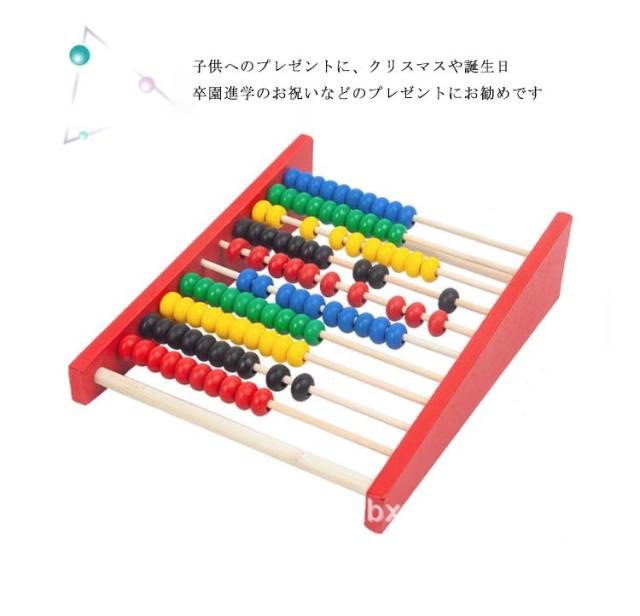 | カラフルな色で球を動かしながら楽しく足し算引き算を覚えることができる百玉ソロバンです。 10本の棒を渡した木製のフレームにカラフルな10個のそろばん玉がついていて、数の数え方を覚えるのに役立ち、立てても寝かせても使える百玉そろばんです。 また、数え方だけでなく、そろばん玉の配置が縦横10コになっているので、掛け算として使っても10×10まで玉の動きを見ながら理解できます。 1台でたし算、ひき算、かけ算を覚える事ができます。玉で自由に形を作る事で思考力や創造力を養います。 卓上に置いても邪魔にならないコンパクトサイズです。持ち運びにも便利。 子供へのプレゼントに、クリスマスや誕生日、卒園進学のお祝いなどのプレゼントにお勧めです。 | |