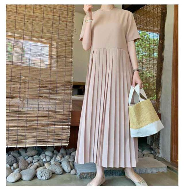 落ち感 プリーツワンピース フレア 半袖ワンピース Tシャツワンピース 半袖 Tシャツワンピース ロングワンピース 切り替え プリーツ tシャツ ラウンドネック マキシワンピース ロングワンピース レディース 春夏 大きいサイズ カジュアル