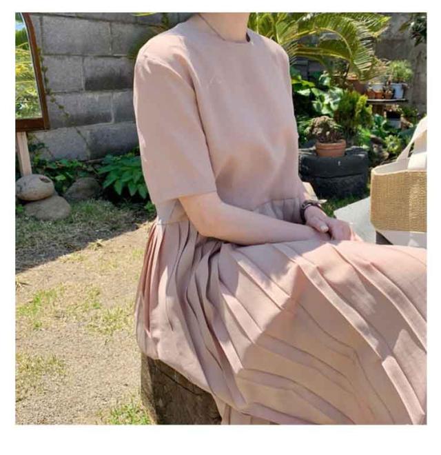 | 変化と表情を楽しむ切り替えプリーツワンピース。 シンプルなのに「痩せ見え」が叶う。腰位置が高く見えスタイルアップ効果も。 半袖デザインは暑い季節に最適で、クルーネックが洗練された印象を与えます。 ゆったりと締め付け感もなくプリーツの切り替えでふんわりお腹まわりも体型カバーしてくれます。 揺れるプリーツが上品で大人っぽく一枚で女性らしい仕上がりになります。 シンプルながらも上品なディテールなのでデイリー使いはもちろんフォーマルにも使え着映えできます。 | |