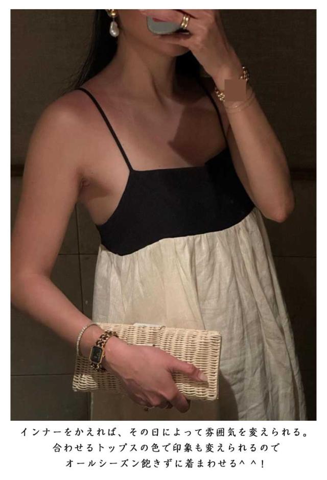 | 夏にピッタリ!激可愛キャミワンピ! スタイルアップとトレンド感が叶う腰位置高めの切り替えで、女性らしさが引き立つ細身の肩紐も魅力的◎。 長さがストラップで調節できるのことが便利!気軽にサッと着ていけるのでかなり利用される。 インナーをかえれば、その日によって雰囲気を変えられる。合わせるトップスの色で印象も変えられるのでオールシーズン飽きずに着まわせる^ ^! 裾に向けてAラインで広がっているので体型カバーしてくれてすごく良い。ちょうどよく張り感もあって、広がる裾のボリューム感がいい感じ! 一枚で着るのはもちろん、Tシャツなどの上からレイヤードも出来る2way仕様のアイテムです! | |