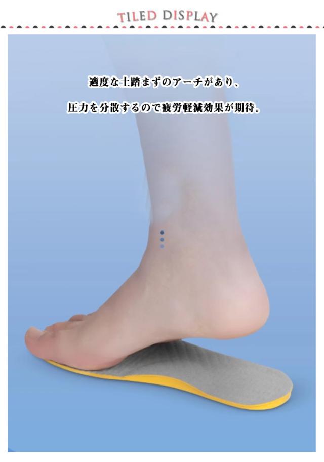 | 内側が低く外側が高くほど良い高低差で無理なくO脚矯正が可能です。 適度な土踏まずのアーチがあり、圧力を分散するので疲労軽減効果が期待。 弾力性のあるPU素材が衝撃を吸収。 凹凸フランネル素材でマッサージ効果。 蒸れにくい通気性素材。 ハサミで簡単サイズ調整。 人間工学に基づき設計された高低差により 歩行時に重心が内側へ偏り、足の内側の筋肉が 鍛えられ、良い歩行へ補正していきます。 膝や関節に痛みがある方は、脚の歪みが原因 である可能性があります。変形性膝関節症 姿勢を矯正されたい方にもオススメ ※効果には個人差があります。 | |