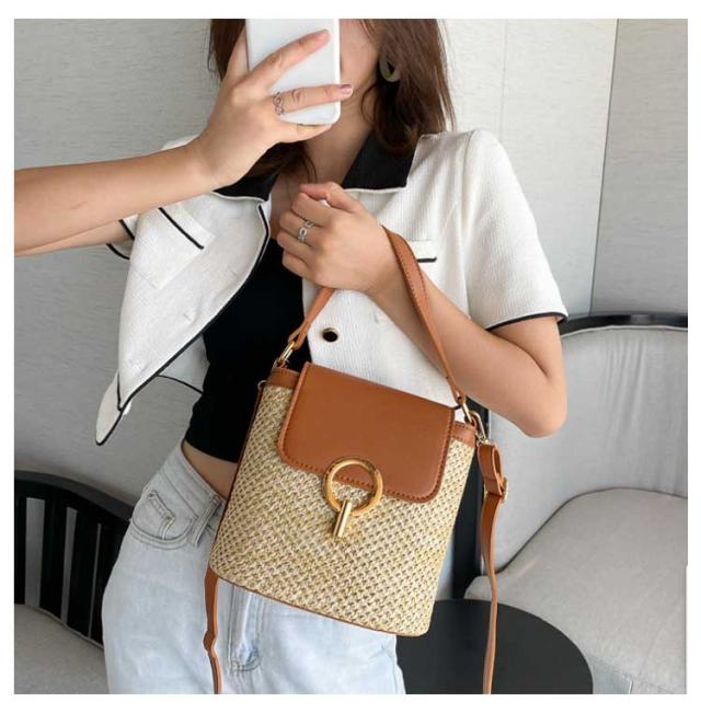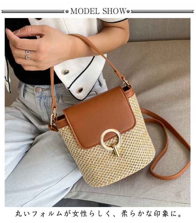 バケツバッグ ショルダーバッグ ストローショルダーバッグ 小ぶり 大人 サマーバッグ かごバッグ かごバッグ レディース カゴ 斜めがけ 小さめ 軽い 軽量 人気 カジュアル シンプル ミニショルダー 合皮 籠 上品 通勤 バッグ
